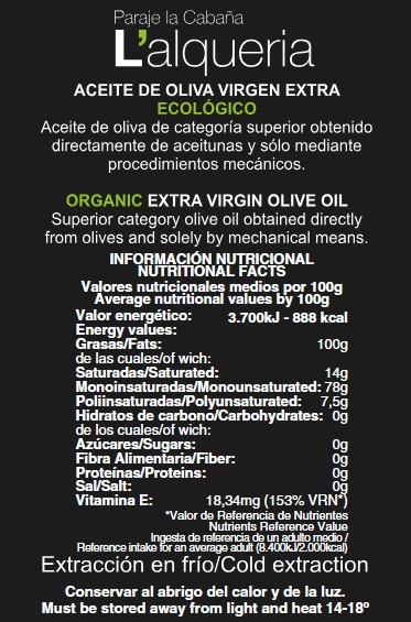 L’Alqueria. Alfafarenca. 500 ml. Cosecha Octubre 2025. Reserva Familiar. Caja 6 unidades