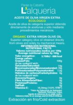 Inicio Gama Ecológico L' Alqueria. Aceite de oliva virgen extra ecológico Coupage Ecológico L’Alqueria. Coupage Ecológico. Cosecha Octubre 2025. 2 litros. Caja 2 unidades